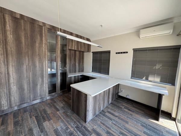 Step outside to discover a luxurious entertainment zone complete with a built-in braai, ideal for hosting friends and family. The pristine pool with a temperature regulator invites relaxation, offering an oasis of tranquility while you enjoy the stunning golf course views.