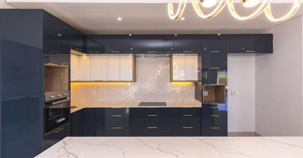 The open-plan living and dining areas exude an airy, welcoming atmosphere, ideal for both family living and entertaining. The modern kitchen, complete with ample counter space and a large central island, serves as the heart of the home perfect for gathering, cooking, and creating lasting memories.