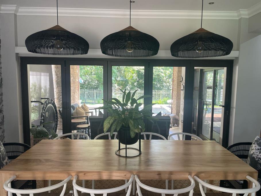 Step inside and be swept away by the open-plan living space sleek, sunlit, and seamless flowing effortlessly onto an expansive undercover patio with a wooden deck, overlooking a show-stopping, manicured garden and indigenous bush. Whether you''re hosting guests or enjoying quiet evenings under the stars, the outdoor poolside entertainment area complete with a built-in braai and elegant seating is pure perfection.