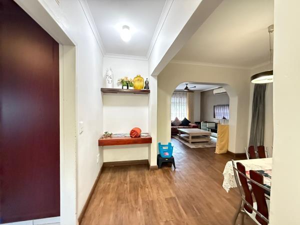 There are four bedrooms and three bathrooms with one being an En-Suite. The other highlights includes a stunning kitchen with granite tops throughout and ample cupboard space. The lounge is positioned well, connecting with the dining and the entertainment lounge.