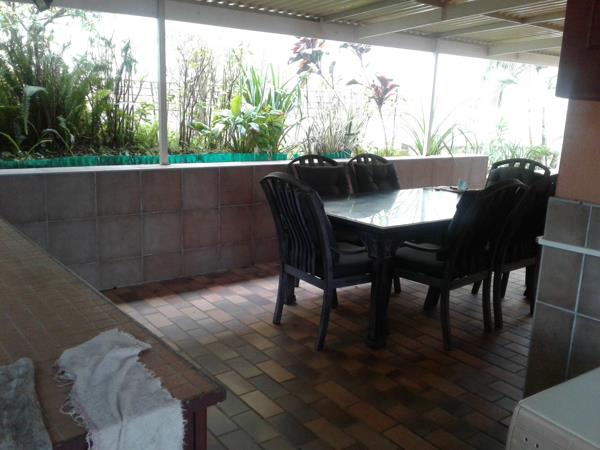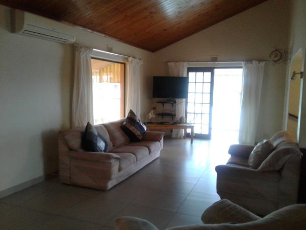 The extended under-cover verandah is fantastic for family and friends gathering around the built-in braai. The house has 3 bedrooms and 2 bathrooms (main en-suite) and an extra bedroom downstairs. The third bedroom could also be utilized as a dining room instead. The kitchen is well fitted with all that one could need. The lounge opens up onto a lovely closed-in balcony with beautiful sea views. There is also a lock-up garage. The house is fully furnished so just move in!