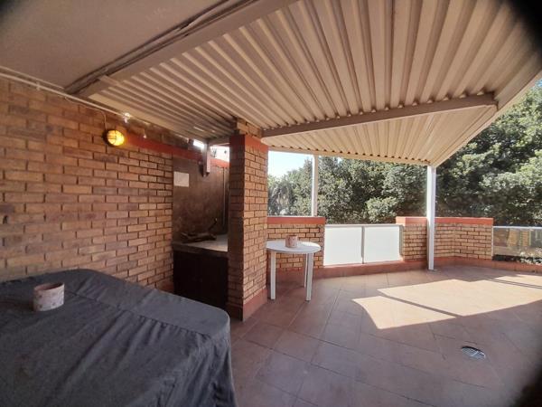 This spacious 3-bedroom top-floor apartment, featuring 2 additional lofts ideal for extra sleeping space. The unit includes 2 bathrooms, one of which is an ensuite to the main bedroom. The modern kitchen is equipped with a built-in stove. Built in braai on the balcony forms one of the standout features for entertaining guests or enjoying quality time with friends or family while sharing meaningful conversation around the braai. The apartment comes with one undercover parking bay and a reliable backup water system. Located in a secure complex with a night security guard. Just across the road, the village center offers essential amenities such as hardware stores, a chemist, supermarkets, and a service station.