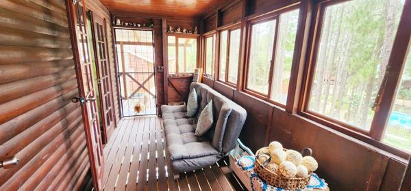 Situated in a log home estate, a short distance from the main Blue Flag swimming beach and village centre, with all amenities, the beach boasts a fun park and restaurant as well as a ski boat launch site. The cottage is well maintained with a lovely fenced garden for the doggies. A full-width balcony welcomes you, the perfect place for chilling with a cup of coffee while admiring the surrounding estate and bird life. On the far end of the balcony, it has been enclosed, this is perfect for a study or hobby room. The large lounge, dining area and cottage-style kitchen are open-plan and lead to the balcony, there are 2 large bedrooms and a family bathroom with bath, toilet and basin. The main bedroom has an en-suite bathroom consisting of a shower, toilet and basin. Under the unit is parking for multiple vehicles, a storeroom and plenty of space for entertaining or even building a familyguest suite. The estate has its own borehole for the days when municipal water is not available. There is plenty of space in the estate for long walks and the communal pool area is perfect for picnics or a braai. Please contact us ANYTIME to discuss further or to schedule a viewing.