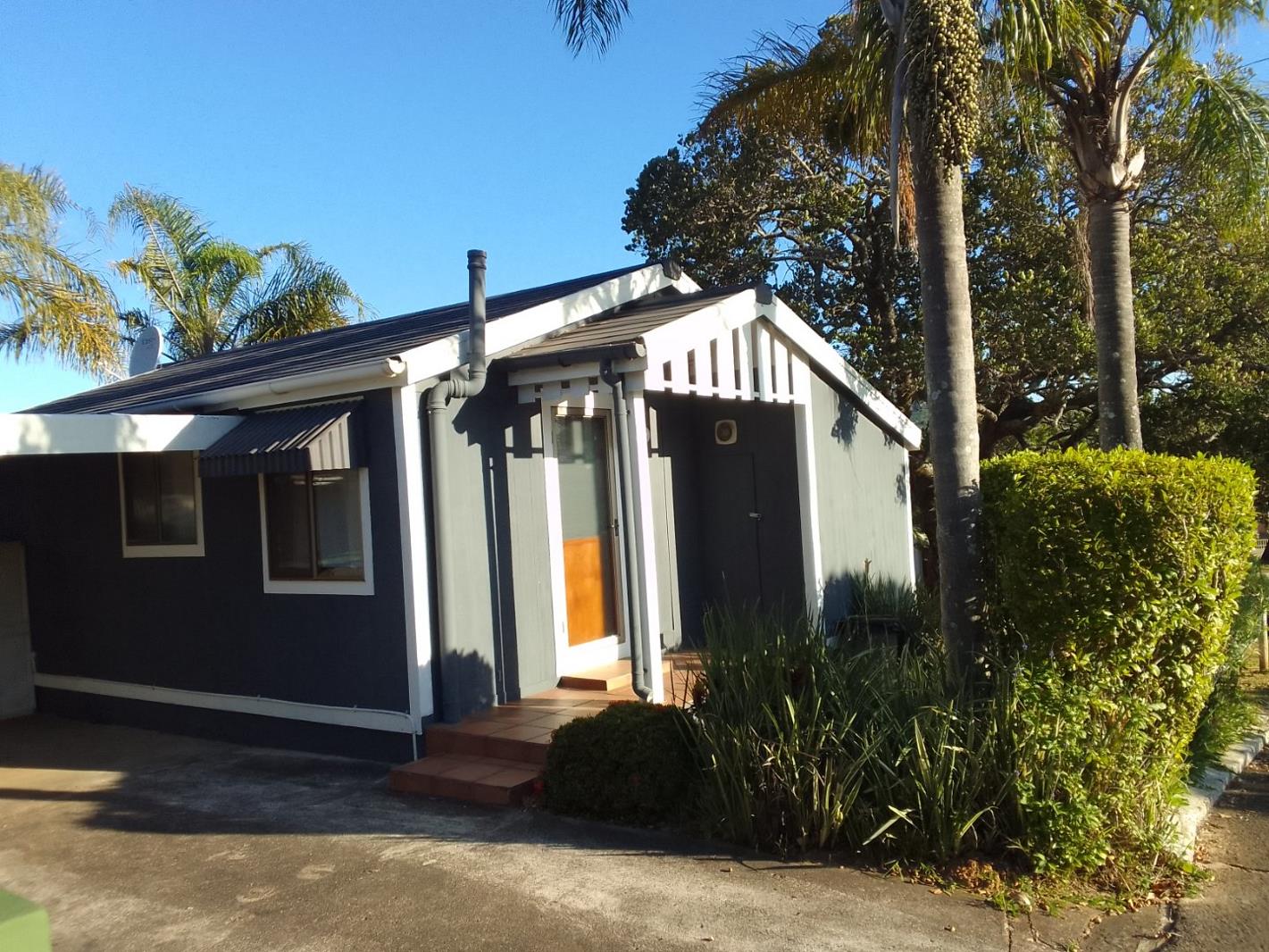Have your early morning coffee and watch the sunrise over the sea from your patio. The cottage has two bedrooms, both with built-in cupboards and a bathroom with a bath, basin and toilet. There is also a shower off the entrance patio which could easily be converted into opening onto the second bedroom. The lounge which has an air conditioner is spacious and opens onto the lovely large patio. There is also a covered carport.