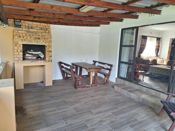 The house consist out of a modern home with open plan living area leading out onto a spacious veranda with build in braai from where you can enjoy the wind blowing through the age old trees and birdsong. you wont hear any traffic or road noise from this little gem.