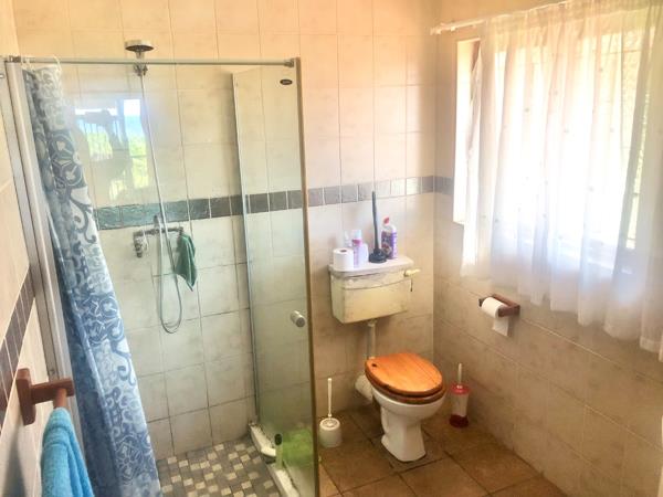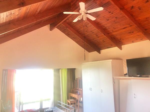 The main house features 3 generously sized bedrooms, including a stunning main bedroom with sea views, a private balcony, and a en suite bathroom. Built-in cupboards provide ample storage throughout.