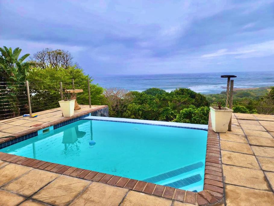 Nestled in the popular suburb of Pumula, close to all amenities and fabulous beaches, lies this beautiful 4 bedroom home. Be welcomed to this home to the open plan lounge, dining room and enclosed patio with Kitchen and build in braai with breath taking sea views.