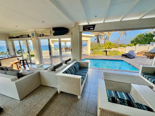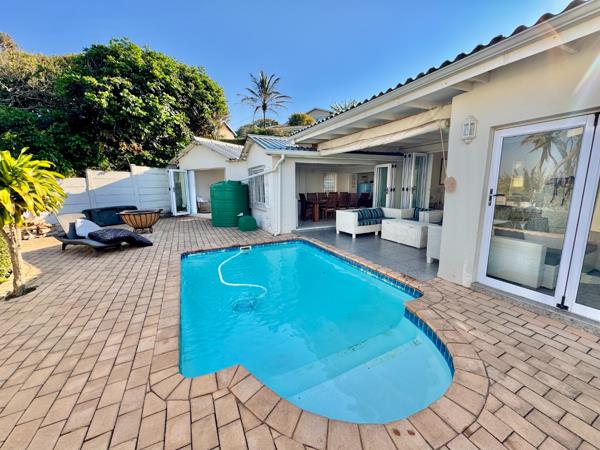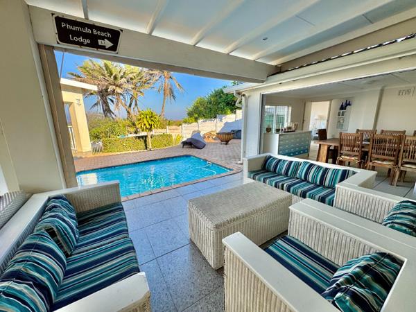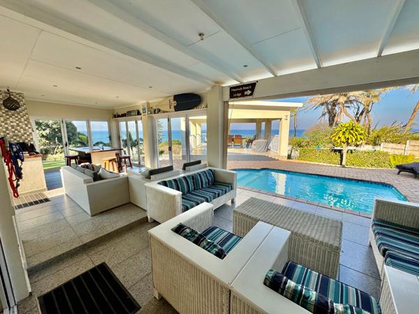 Set in the highly sought-after suburb of Umzumbe, this character-filled 4-bedroom home is a coastal gem with breathtaking sea views and an entertainment-focused layout. The heart of the home is the open-plan lounge and dining area that flows seamlessly through stack doors to a covered entertainment space complete with a bar and built-in braai. Just beyond lies a sparkling swimming pool, perfectly positioned for hosting friends and family. On the opposite side of the pool, a large covered lapa offers a second outdoor space to relax and take in the stunning ocean backdrop.