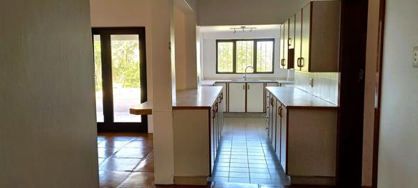 Seamless flow to covered patio, deck, sparkling pool, and braai area