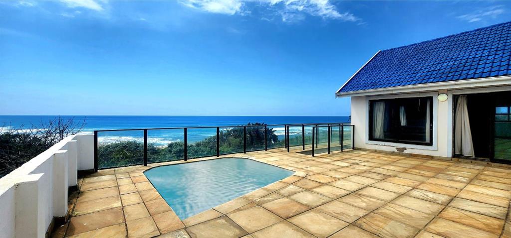 Situated in the serene upmarket seaside village of Umzumbe, a short drive to shopping at Hibberdene and 24km from the business hub of the South Coast, Port Shepstone. This solid home is situated on the beachfront and commands outstanding breaker views of the Indian Ocean and lagoon, the main beach is stunning and to ensure one''s safety, there are lifeguards on duty. Enter the home through the entrance hall into the large open plan living area, the kitchen has loads of cupboard space, a centre island and granite tops, the dining area flows to the bar on the left and the large lounge, with vaulted ceilings and impressive wrought iron chandelier. This opens to the pool deck through stacker doors to the left, and to the right is the entertainment area, with amazing ocean views, jacuzzi and built in braai. There are 5 bedrooms, all spacious and 4 bathrooms (main ensuite), the main bedroom also opens to the entertainment area. Downstairs is a flat which consists of a bedroom and bathroom, a larger room could be used as a lounge and this opens to another section which could be converted to a kitchen and pantry. There is a double garage with maids quarters and bathroom. The property is being sold with all furnishings.