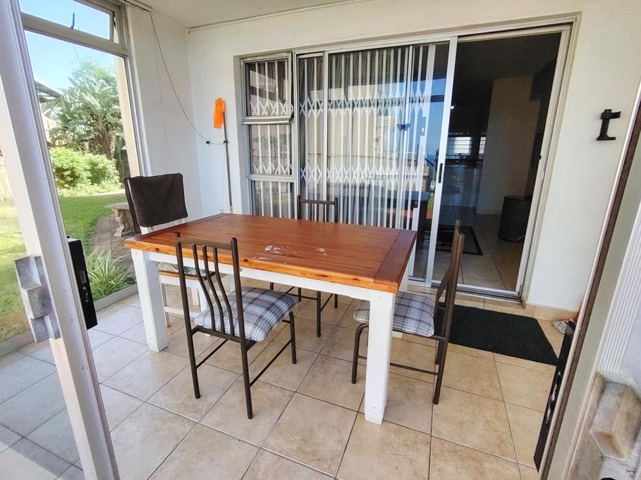 Take a walk through the property. When entering the complex the under cover parking (one) is to the left, next to the tennis court and communal swimming pool. The unit is level with the parking area but is ground floor. When entering the fully furnished unit the first bathroom is to the left with a shower and toilet. Down the corridor the kitchen with granite tops overlooking the open plan lounge / dining room - from there it flows out onto the enclosed patio with glass windows and sliding door. The braai is situated outside the glass door and the garden area in front of the unit offers sea view, where you can enjoy breakfast at sunrise. From the lounge area the main bedroom is to the right and has sea view. Down the corridor to the left, the family bathroom and the second bedroom are situated. This unit is move in ready and during holidays, you can park your vehicle and walk where you want to be and is ideal for a lock-up and go. Should you want to live here permanently, the unit is very central and walking distance to the beach.