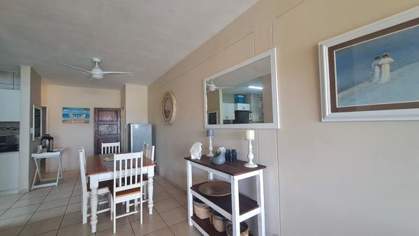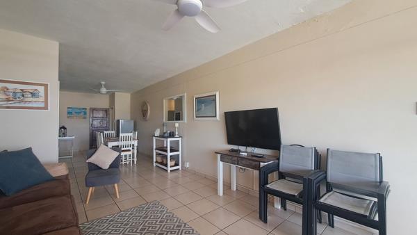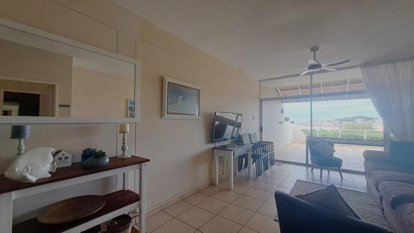 The open-plan layout features a modern kitchen with granite countertops and ample cupboard space, flowing seamlessly into a generous dining and lounge area. The lounge and main bedroom both open to a sizable, partially covered patioperfect for soaking in the sea breeze and views. The main bedroom includes an en-suite bathroom, and the unit boasts a modern second bathroom and built-in linen cupboard, all tiled to the ceiling.