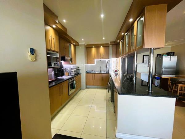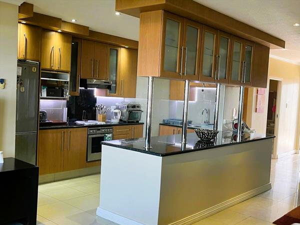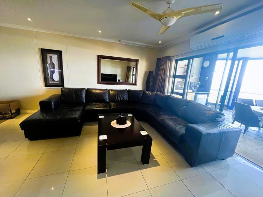 The apartment spans a generous 168 m and is sold fully furnished, making it entirely move-in ready. The open-plan living area includes a stylish lounge and dining space that flows seamlessly onto a spacious balcony. This balcony is enclosed with modern seamless stacker doors and offers magnificent 180-degree sea and breaker viewscreating a year-round indoor-outdoor living experience, perfect for entertaining or enjoying the sunrise with your morning coffee. A built-in braai adds to the relaxed coastal lifestyle.