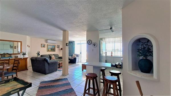 Sole Mandate - Welcome to your perfect forever home! This furnished 203-square-meter apartment, located within walking distance of the prestigious Blue Flag Lucien Beach, is ideal for long-term living and as a permanent residence. The open-plan kitchen, lounge, and dining area flow seamlessly onto a patio that offers breathtaking 180-degree sea views, with an enclosed braai room for those cozy rainy days. The property features three bedrooms with built-in cupboards, including a main bedroom that opens onto the patio with sliding doors and an en-suite bathroom. Additionally, there is a fourth large room that can be converted into a bedroom, office, or recreation space.