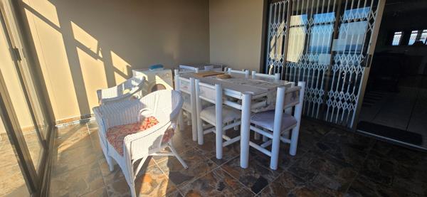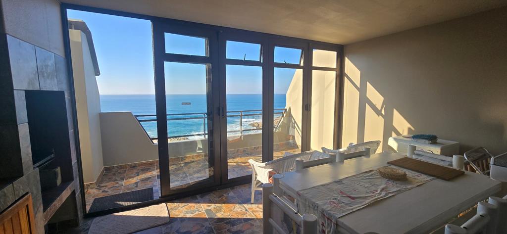 The open-plan kitchen is equipped with built-in cupboards and flows seamlessly into the generous family room, perfect for entertaining or unwinding. A dedicated braai room with a built-in braai adds to the home''s charm, while the balcony provides the ideal spot to soak in the sea breeze and admire the ocean vista.