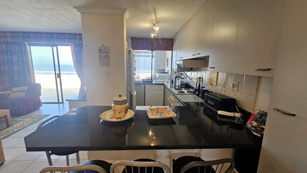 This unit comes with a lock-up garage and an additional under-roof parking space, ensuring ample and secure parking for residents. The apartments open-plan layout connects the lounge, dining area, and kitchen, leading seamlessly to an oversized patio that captures stunning ocean views. The modern kitchen boasts sleek granite countertops and a unique sliding window opening onto the patioa perfect setup for entertaining. The main bedroom also opens onto the patio, inviting in the refreshing sea breeze and the calming sounds of waves.