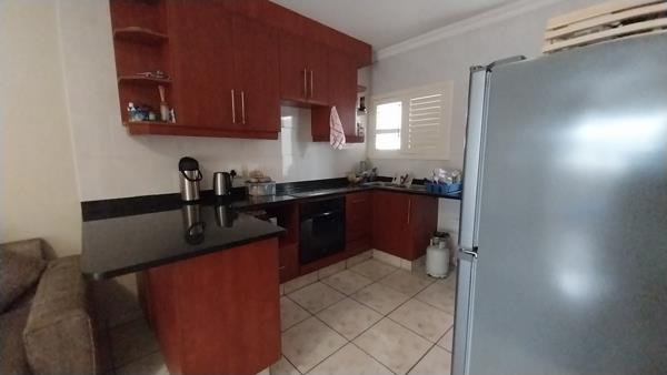 This Neat and Modern ground floor unit has a lovely open plan kitchen and lounge area that leads out to an enclosed patio with stack windows, where you can enjoy the slight sea view. Giving extra living space. 2 bedrooms with ample built in cupboards, 2 bathrooms (main en-suite).
