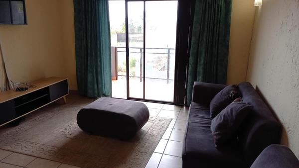 The lounge and main bedroom boast air-conditioning for your comfort, and both open out to a spacious balcony, overlooking the pool and communal braai area.