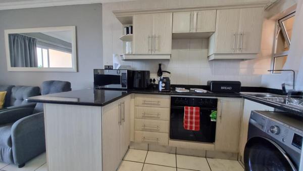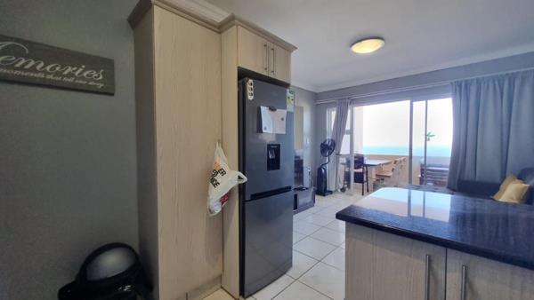 The kitchen boasts sleek granite countertops, ample built-in cupboards, and modern finishes, creating a functional yet sophisticated space for both everyday cooking and easy entertaining. The fully tiled living area is bright and inviting, opening seamlessly onto a private balcony where you can savour your morning coffee or relax as you breathe in the fresh coastal air.