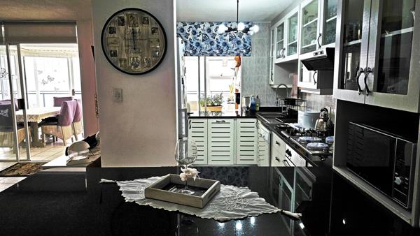 The sleek, contemporary kitchen features granite countertops, a breakfast bar, an undercounter oven with hob, and a built-in two-plate gas stove ideal for effortless entertaining or relaxed family meals.