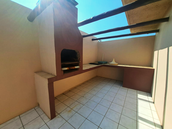 Convenience and security are key, with a lock-up garage, visitor parking, security gate at the stairway entrance, leading to your private top-floor haven. The complex also offers communal braai facilities, landscaped gardens, and backup water supply via a JoJo tank.
