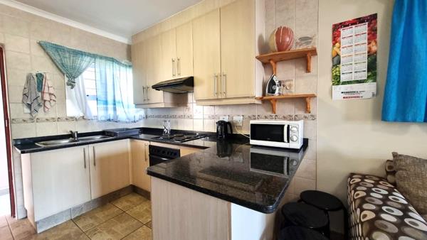 Additional features include open parking, burglar gates for added peace of mind, and full tiling throughout for easy maintenance. The complex itself is exceptionally well cared for, with electric fencing and an automated entrance gate ensuring security. The complex is also fitted with JoJo water tanks, providing a reliable backup water supply.
