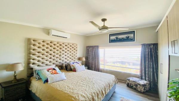 The property also boasts a range of impressive features, including a refreshing swimming pool, a braai area, and an open deck atop the double automated garage. For year-round comfort, the home is equipped with three air conditioners.