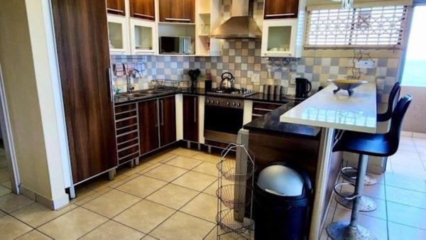 This luxurious apartment offers everything you expect, with three spacious bedrooms, large open plan lounge and kitchen, and an ample balcony with built-in braai and superb sea views.