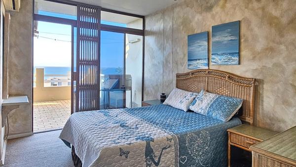 The main bedroom is a definite delight and opens to same said balcony.... see the sea, me the sea AND hear the see. The sea views are breathtaking and it makes you feel that you are on a permanent holiday. The main bedroom is en-suite to a stunning, modern bathroom with a bath. The 3rd bedroom is of good size and shares the second bathroom with the 3rd one. The complex is well maintained and the apartment comes with a lock-up garage AND FULLY FURNISHED. Perfect location: close to all amenities, shops and the ocean. Interesting plus: you may actually have a real, wood braai on your balcony. More interesting is that the complex is pet friendly!!! Please be sure to look at the video. There are electric fencing and back-up water tanks Give ma a call...