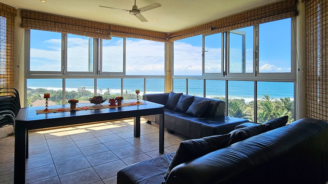 The thoughtfully designed lay-out of the apartment makes sure that the main bedroom has privacy, and it is on the lefthand side of the lounge and the other 3 bedrooms are at the opposite side. The main bedroom is spacious and has a large window from where you can enjoy an ocean infused awakening every day. BLISS INDEED. There is a lovely, full en-suite bathroom with his and hers basins. The other 3 bedrooms are spacious and light and they share the other 2 bathrooms, one with a shower and one with a bath. The loung and main bedroom have ceiling fans, but nothing beats the ocean breeze!! For your peace of mind the complex has high security standards which include automated gate access leading to the double automated garage . There are perimeter walls and palisade fencing in this much sought after and well maintained complex. There is a borehole within the complex plus back-up water tanks. WHAT A PLEASURE!!! This stunning apartment is situated within walking distance of Blue Lagoon restaurant and Cocktail deck and the famous Waffle House. Please take the time to look at the video. Give me a call....