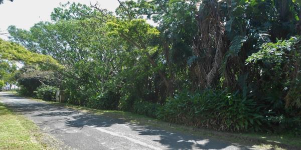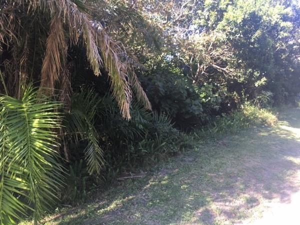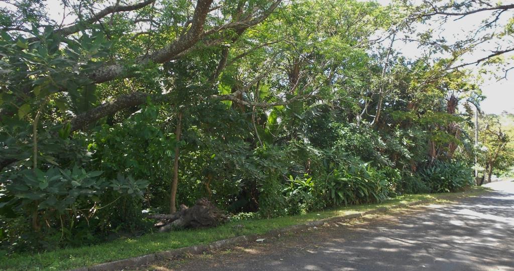 This corner stand, situated in Ramsgate Ext 3, measures 1,641 square meters and features two access roads. The land has not yet been cleared, but it is covered in low-lying underbrush. Below this site are three houses, and the road above provides additional access.