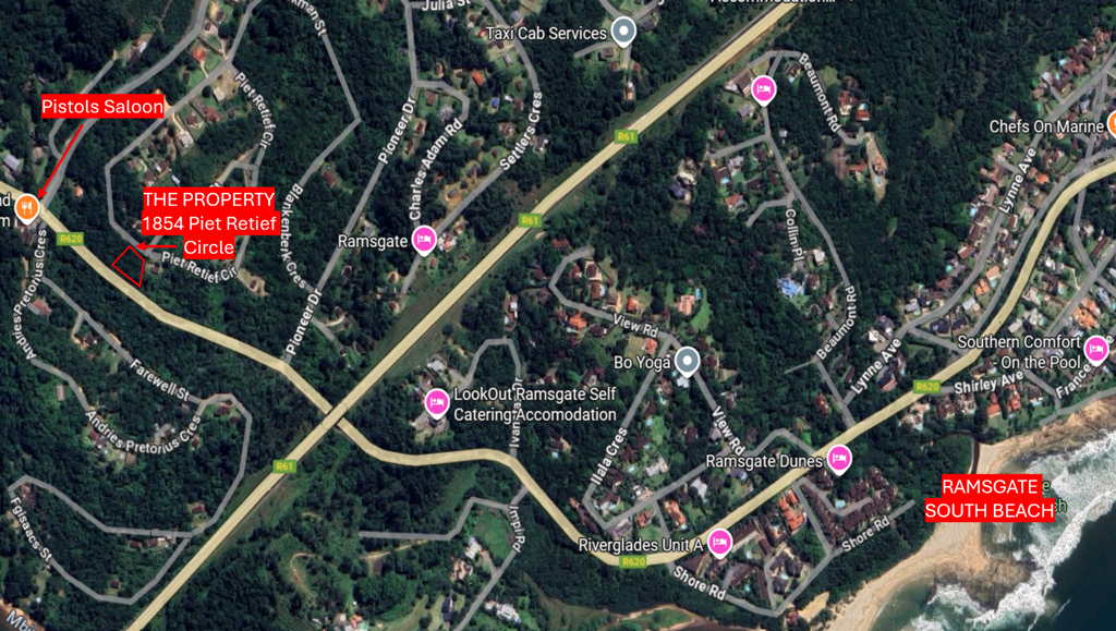 Situated between a main national road and a quiet residential street, this vacant land offers a unique opportunity for both residential and investment purposes. The property is easily accessible, with the entrance off a tranquil residential street, while benefiting from convenient access to the highway. Just 3.8 km (a short walk) to the pristine Ramsgate South Beach, this stand promises a coastal lifestyle in a peaceful yet well-connected area.
