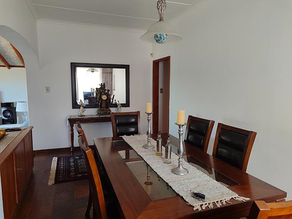 The front verandah has an immaculate tiled Mural by a special artist. A super place to enjoy entertaining friends and family, with seaviews and a traditional South African Braai-social. A one bedroom flat has a comfortable separate income source or perhaps your guest unit for extended family in the holidays. Other features include a well-established garden, watertank and double garage with extra paved parking. Make this a park of your viewing list, owner can negotiate, and your dream and home await.