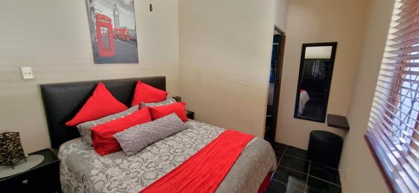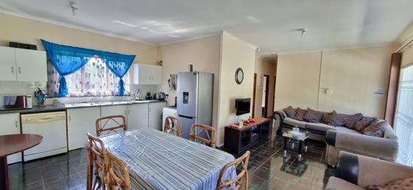 A secured foyer entrance gives you access to the ground level flatlet and another identical flatlet on the upper level. Both have three spacious bedrooms, two bathrooms with mains being en-suite. The upper level has spacious open-plan kitchen, dining area and lounge with access onto a deck. Downstairs, there is separate kitchen with open-plan dining area and lounge, with access onto a patio. Both flatlets kitchens are fully fitted with ample built-in cupboards, dishwasher, washing machine and tumble dryer. Further each has its own geyser, aircon and alarm. There is ample backup water with 2500 litre Jojo tank connect with pump. The landscaped gardens are spacious and ideal for large functions and parties by the swimming pool and braai area. Close to shops, popular restaurants, Waffle house, Blue Lagoon to mention a few. Meerkat Manor is a self-catering holiday property and is featured in Lekkerslaap and Travel Ground and boasts awesome reviews. Both units can be rented individually and together they can accommodate twelve people.