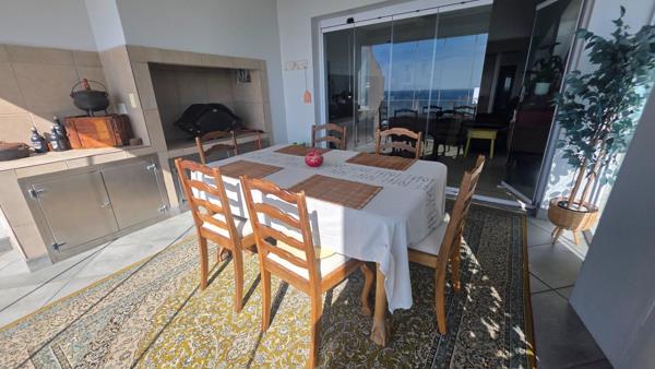 Additional features include a double garage with shelving and plumbing for a washing machine, guest parking, an alarm system, and fibre connectivity. The well-maintained complex provides direct beach access, a communal swimming pool, JoJo tanks, and a borehole, ensuring both convenience and coastal luxury.