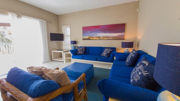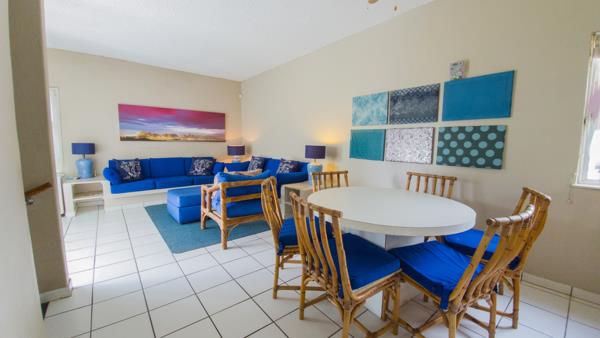Unit consist of ground floor, (garage and third bedroom on suite and small patio) middle floor(patio, lounge and dining area, kitchen and walk-in pantry), and top floor(two bedrooms and two bathrooms) - arrive at the entrance with its striking red door, and you can go right into the garage, or upstairs on the carpeted stairs. This will take you to the first floor and then: entering the lovely spacious open plan lounge, dining area, furnished in a nautical theme and kitchen(the kitchen needs a bit of modernising) - including walk in pantry. Open the sliding doors, seaviews - beautiful ! Enter onto the patio overlooking the ocean and the complex garden. Beautiful breeze coming into unit. Up another flight of carpeted stairs (and the stairs are easy to do!) Left, you enter the spacious main bedroom on suite, or right - bathroom for guests, and into a lovely large second bedroom. Beautiful sea views from main bedroom. Open the sliding windows and hear the sounds of the ocean all day long. This unit has a third bedroom separate from the rest, entering from inside the garage. Bathroom on suite with own door onto another ground level patio with views. Lovely for your guests or teenagers who wants to be private from the rest. All bedrooms have built in cupboards and unit fully tiled. Unit has own large lock up garage and complex have back up water tanks. This unit is worth every cent and more ! You are getting this unit at an absolute bargain price !! Make it your own. Call me now for a viewing before its sold - never to be repeated ever.