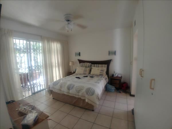 The neat fully-fitted kitchen has lovely finishes that includes an undercounter oven and lots of cupboards plus great flow from the kitchen to the dining and living area. Both the lounge and main bedroom has a sliding door with trellidoors which leads to the spacious entertainment patio with immaculate garden and tropical views.