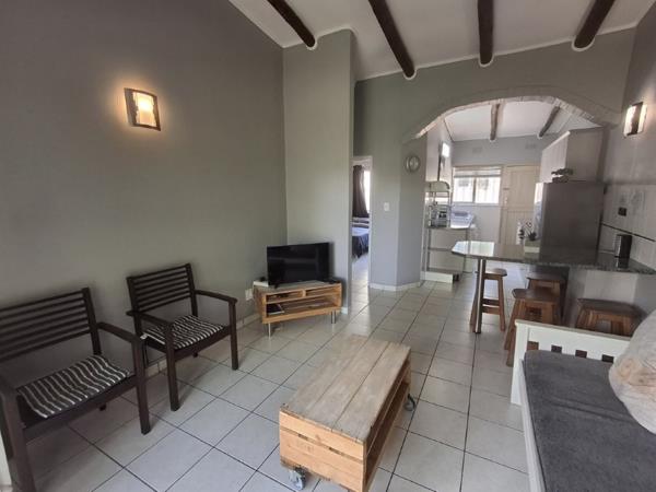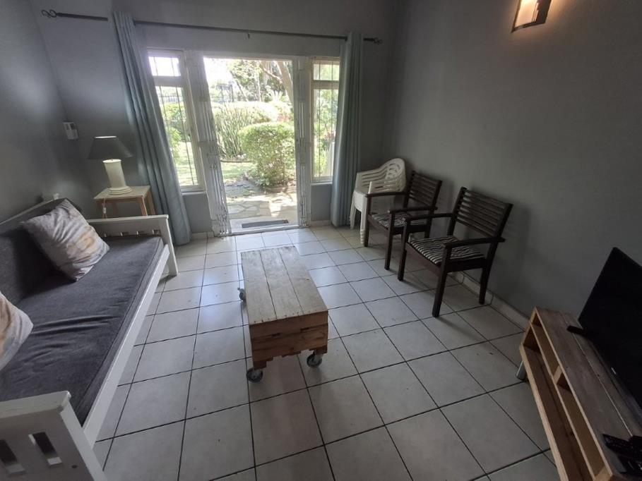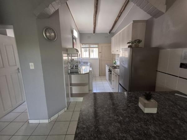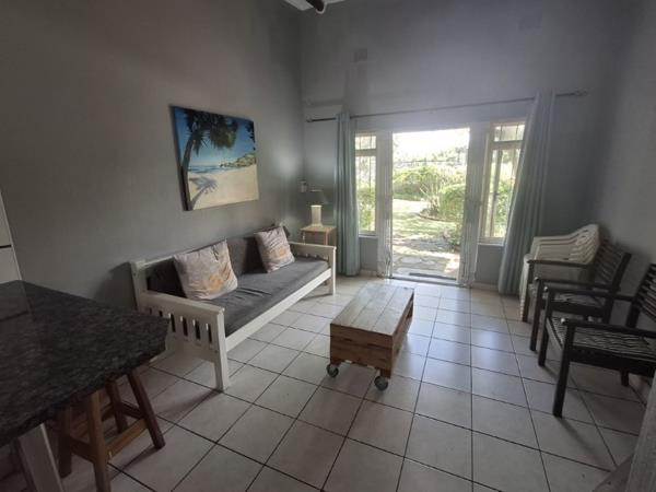 The home has a nice bright open plan living area with French doors to an enclosed patio area overlooking the beautiful crystal blue pool, the patio area being sheltered and partially covered is perfect for braaiing/barbecue or simply sipping your evening cocktails after a long day at the beach. The kitchen is also open plan with lots of cupboards and granite work surfaces, a separate door leading to a convenient enclosed courtyard makes for easy entertaining.