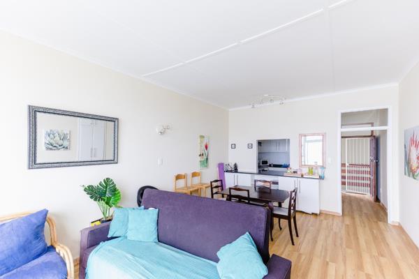 The unit is on the top floor, where views are at its best. The unit has fully laminated flooring and is neat and tidy. The kitchen boasts granite tops, breakfast nook and ample cupboard space. The dining and lounge area is open plan and leads to a balcony where the views will take your breath away. Enjoy whales splashing, dolphins jumping and beautiful sunsets. The 2 bedrooms are well sized and have built in cupboards. The bathroom consists of a bath, basin and toilet but there is also a separate shower and a separate toilet in the unit.