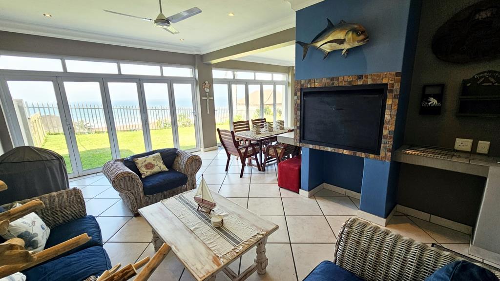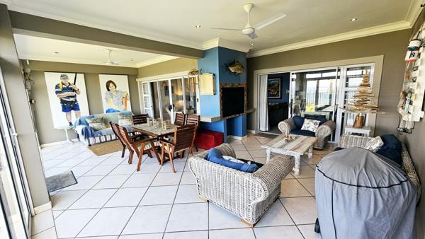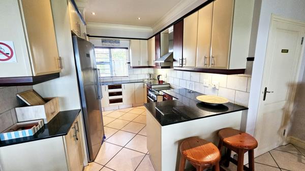 Discover this exceptional unit nestled in the coveted, leafy suburb of Ramsgate. Ideally positioned just minutes from Blue Flag beaches, Margate Airport, and various amenities, this home offers both convenience and luxury. Step onto the expansive patio that leads into the open-plan living and dining area, which seamlessly extends to another patio featuring a built-in braai. This space, enclosed with stacking doors, opens up to a private lawn with stunning ocean views. The gourmet kitchen, adorned with granite countertops, includes a separate scullery and laundry area.