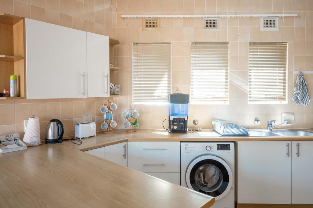 The downstairs kitchen is spacious, fitted with melamine cupboards with loads of storage space and formed tops which provide a large working space. All plumbing connections are available.