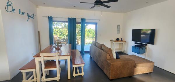 The main dwelling, situated upstairs, boasts a spacious open plan lounge, dining room, and kitchen complete with a convenient gas stove. With three bedrooms and two bathrooms, including a main en-suite, this dwelling is designed to cater to all your needs. Moreover, the main bedroom, second bedroom, and lounge all open onto a large balcony where you can soak in slight sea views and indulge in the coastal breeze.