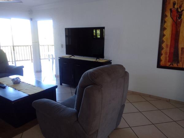 Very neat fully furnished apartment in an up-market block. Within walking distance to the beautiful Ramsgate beach, the Ski Boat club, the Waffle House and various restaurants. The apartment has a beautiful open-plan lounge and fully fitted kitchen. The lounge opens onto a very spacious balcony with incredible views of the ocean, the beach and the river. A wonderful place to sit and relax, have a braai and a few drinks while taking in the view.