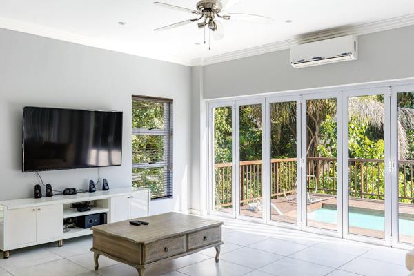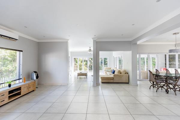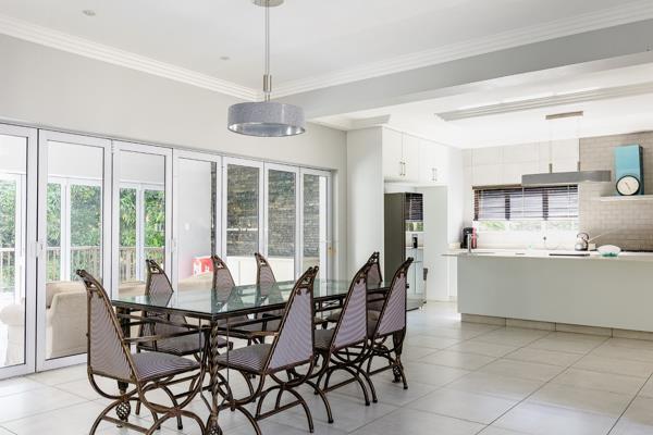 This freestanding house is perfect for a big family, offering ample space and luxurious features. The first level boasts an open-plan design, seamlessly connecting the living spaces for a spacious and airy feel. Enjoy a modern kitchen with a centre island, plenty of cupboard space, a scullery, and a pantryideal for culinary enthusiasts. The dining room opens via stack doors to an enclosed patio, leading to a wooden deck with a sparkling pool, perfect for entertaining. Two lounge areas provide versatile living spaces, with one opening directly to the patio and pool area.