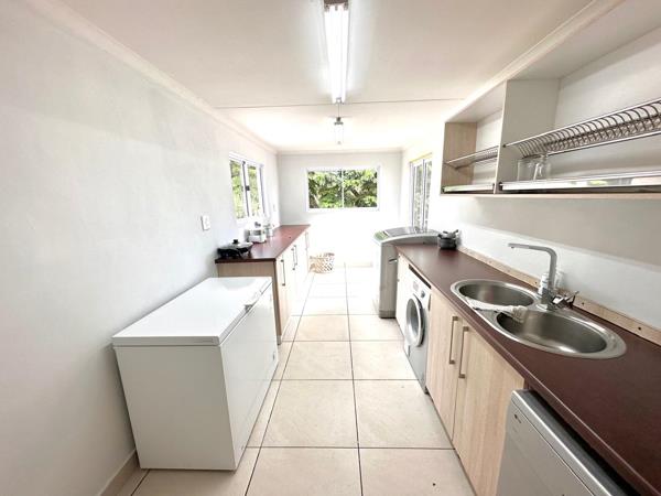 The generously-sized kitchen, complete with a scullery, is every chef''s dream and provides the perfect setting for creating culinary masterpieces. Adjacent to the kitchen is a cozy lounge area, creating an ideal space for intimate evenings spent with loved ones. With two separate dining areas, hosting gatherings and entertaining guests could not be easier.
