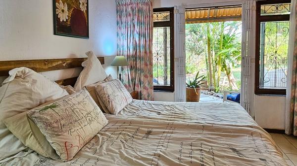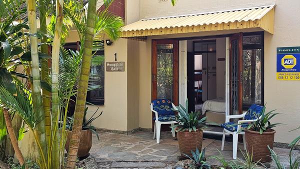 The 2 bedrooms are spacious with the main en-suite to a bathroom with a bath. It has a walk through cupboard to the bathroom. The room also opens with double glass doors to the enchanting patio, light and airy. The second bedroom is also spacious with a double bunk bed and a 3rd bed. It is also en-suite with a bathroom with a shower. This is SUCH AN INVESTMENT whether you let it out for holiday letting or be blessed enough to live there permanently. The pool is far enough not to invade your privacy, but close enough to take a 20m walk for a lovely swim. The townhouse is sold fully furnished and with a lock up garage and there are plenty back-up water tanks. 50 m from the Southbroom Beach is a privilege few can brag about!!! WELL PRICED INDEED!!!! Give me a call and we can go for a viewing!!!.