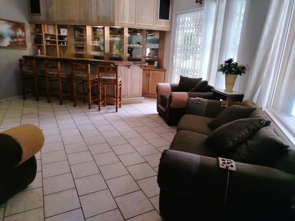 Entertainment area inside has a beautiful wooden bar with sliding doors which lead onto the pool