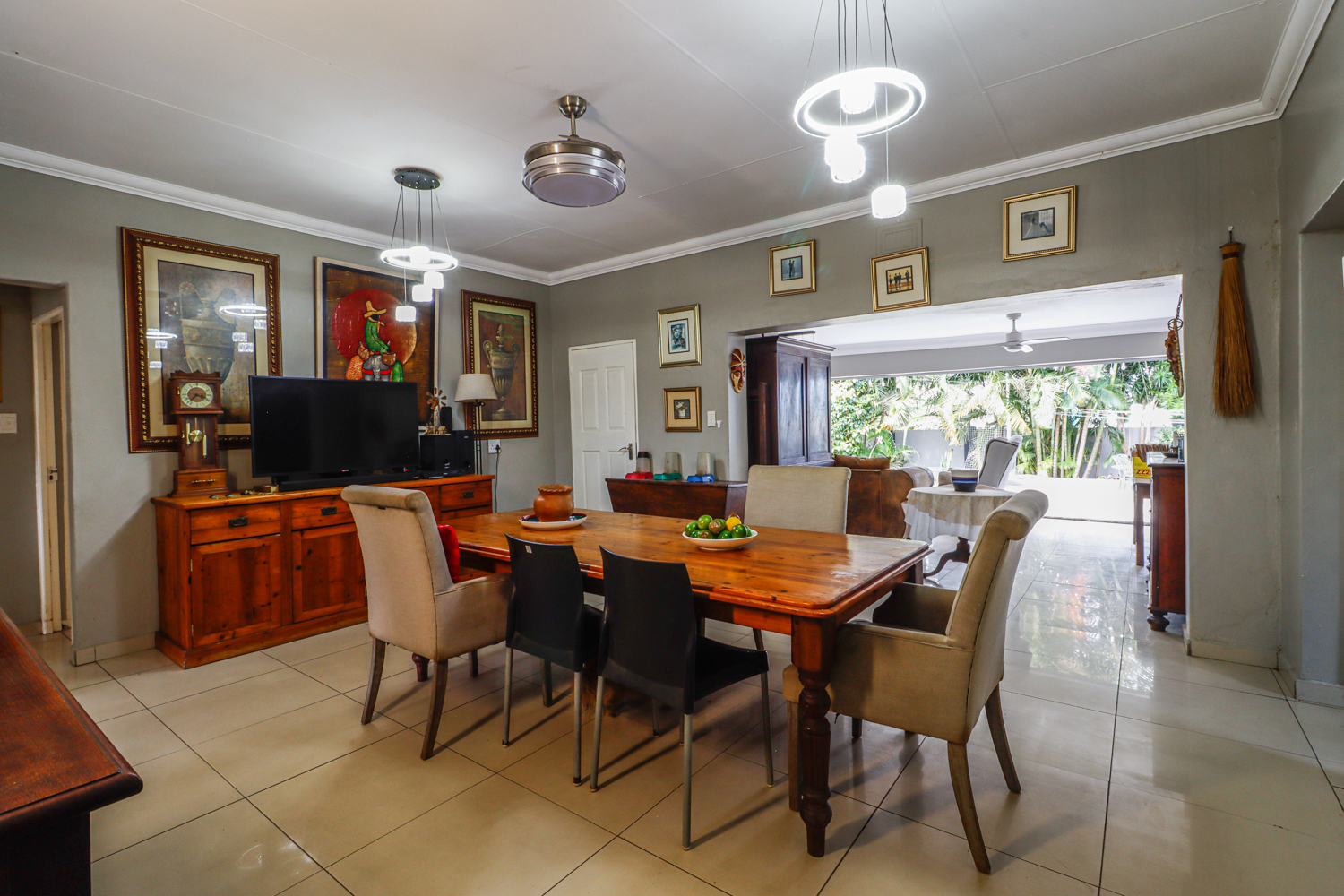 The living room flows effortlessly to a covered entertainment area, ideal for hosting. Here youll find a built-in braai (barbecue) and a sparkling swimming poola true outdoor haven.