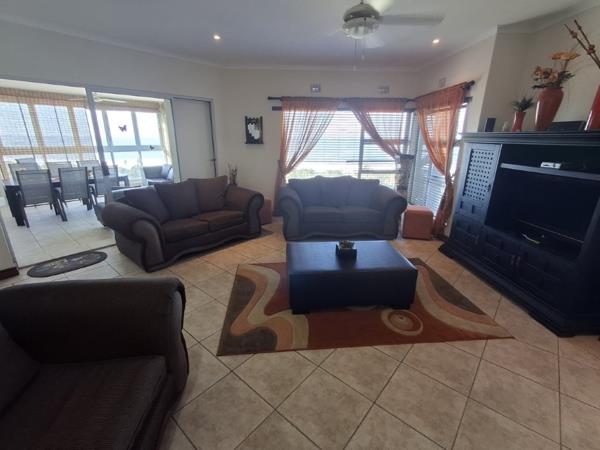 This beautiful upmarket apartment will capture your heart !! the feeling of well-being envelops you as you are met with bright spacious, open plan, living areas with the vast Indian ocean as your backdrop. The living areas are very versatile. An under-cover entrance will lead you into the spacious lounge with glass sliders leading into a dining area of note, with built in braai, this can be utilized as a formal entertaining area or a laid-back braai evening. With the entire area having stack sliding windows you will have the Ocean as a permanent dinner guest.