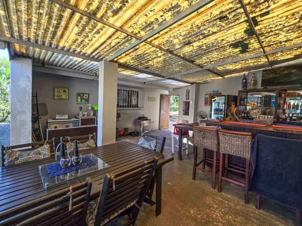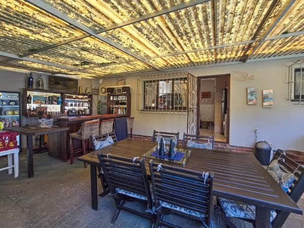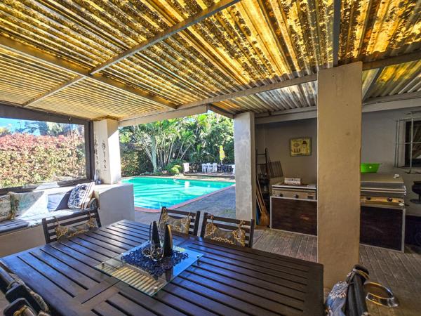 The open-plan living area leads to a covered entertainment space featuring a built-in braai and bar counter, all overlooking a large poolperfect for hosting gatherings or enjoying family time. Additionally, a separate, generously sized one-bedroom self-contained flat provides versatile accommodation options.